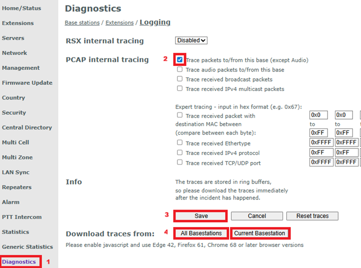 Activate and retrieve DECT logs