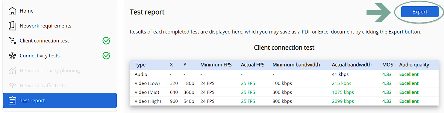 La herramienta reconoce la importancia de realizar pruebas in situ para examinar la configuración de su red y garantizar el cumplimiento de los requisitos de Rainbow, con especial atención a la conectividad WAN con el centro de datos de Rainbow en todo el mundo.