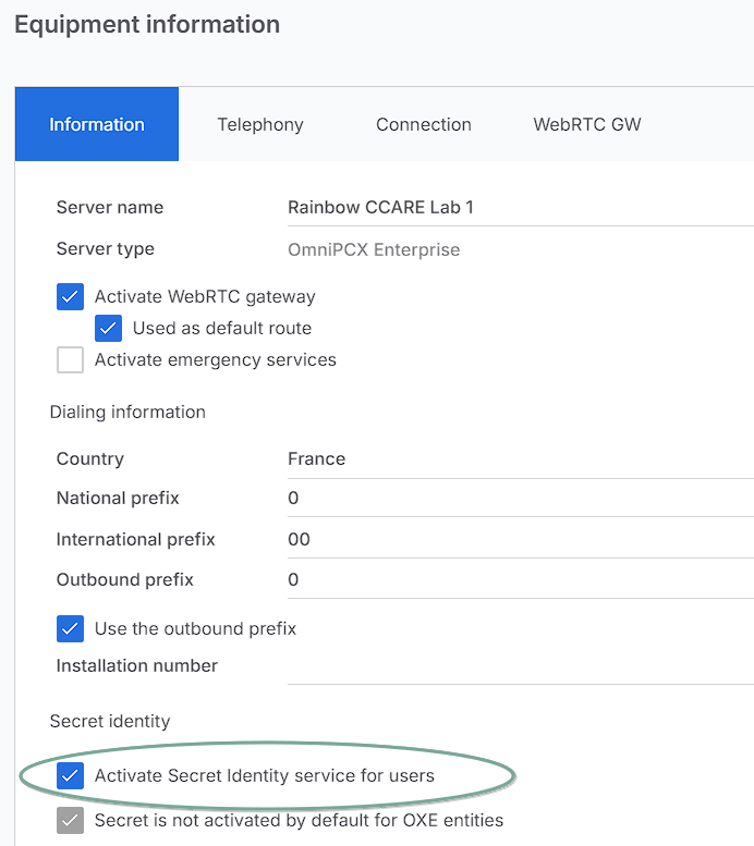 En el lado Rainbow, la configuración se realiza a nivel de centralita con una cuenta de administrador Business Partner .