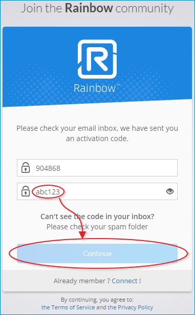 - Compruebe la carpeta "Spam" o "Clutter" de su cliente de correo electrónico, añada noreply@openrainbow.com o mejor el dominio openrainbow.com a los remitentes de confianza.