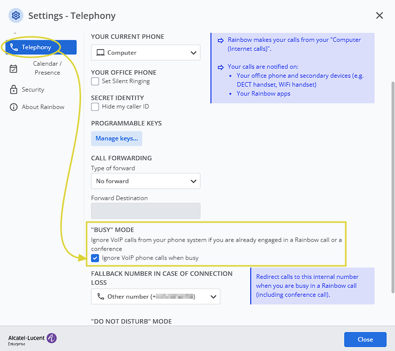 Je n'ai pas la gestion de New Busy avec OmniPCX Enterprise.
