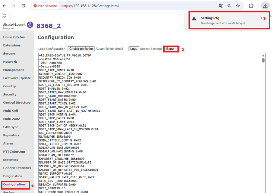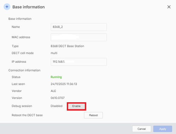 Activer et reprendre les logs DECT