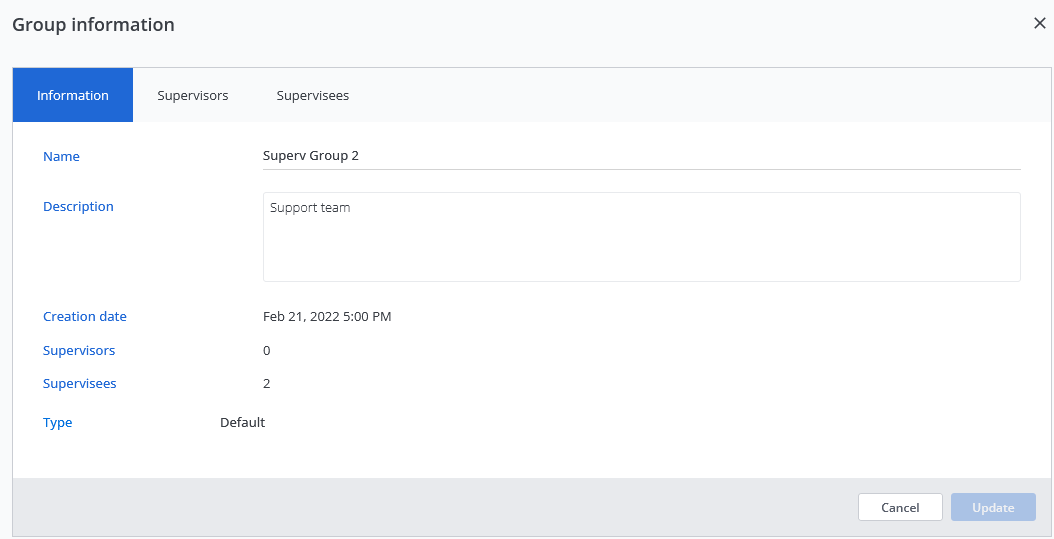 Le operazioni di configurazione dei gruppi di supervisione vengono eseguite dalla finestra di gestione dei gruppi di supervisione dell'azienda: veda: Accesso alla finestra di gestione dei gruppi di supervisione.