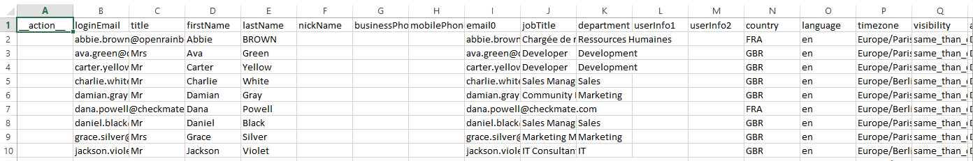 Il provisioning massivo consente di aggiungere, modificare ed eliminare un elenco di membri dell'azienda tramite un file CSV in formato UTF-8.