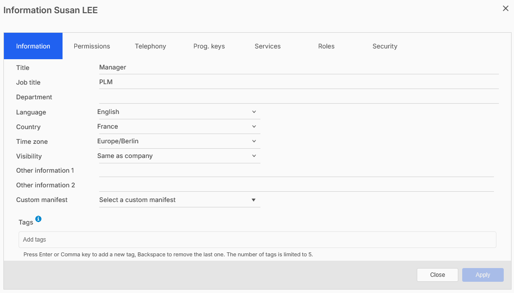 - Clicchi su Applica per convalidare e uscire dalla finestra delle impostazioni del membro dell'azienda.