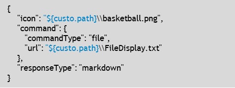 In questo esempio, il file *.ZIP deve contenere i file custo-manifest.json, basketball.png e FileDisplay.txt.