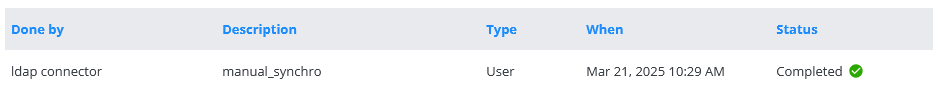 Nella colonna Fatto da, connettore ldap indica che il rapporto riguarda una sincronizzazione della directory LDAP.
