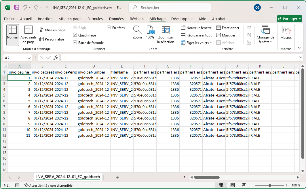 Il nome del file csv è standardizzato come segue: INV_SERV_Date_EC_Company_name.csv