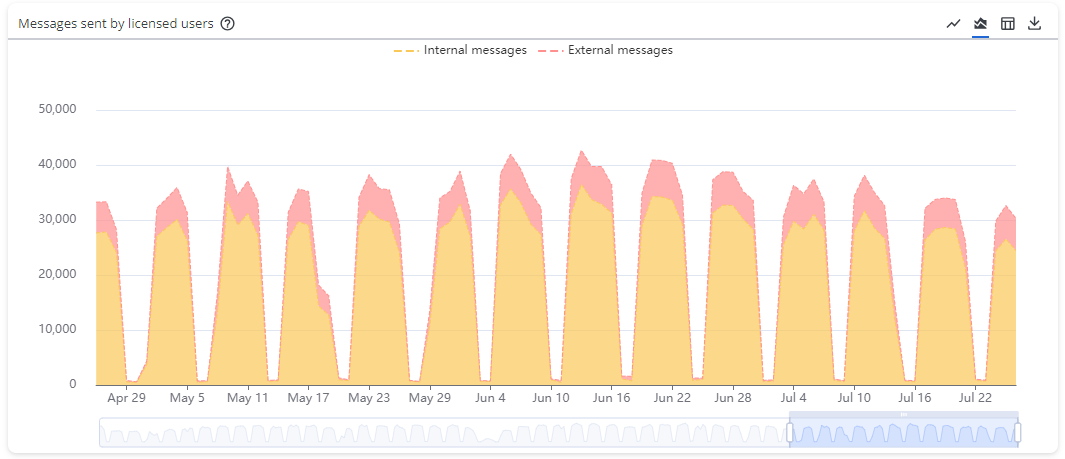 Questa metrica visualizza il numero di messaggi inviati da tutti i suoi utenti.