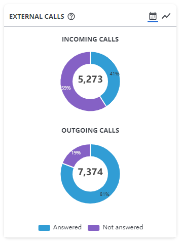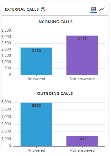 Nota: nella scheda 'Chiamate telefoniche' vengono prese in considerazione solo le azioni effettuate dagli utenti con una licenza diversa da Essential. Pertanto, i dati possono differire dal Dashboard Globale, che riporta ogni utente.