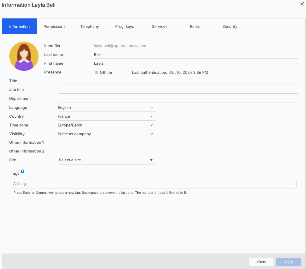 Per configurare un membro dell'azienda per il sito: