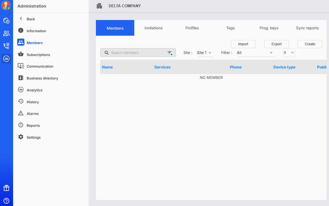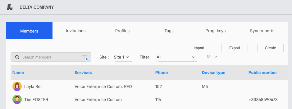Se necessario, per visualizzare i membri dell'azienda in base al sito, selezioni Filtro per sito nell'area Ricerca membri e il sito di destinazione nell'elenco a discesa (ad esempio, sito 1).