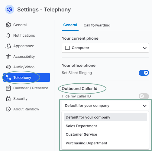 Dal menu' accessibile tramite l'immagine del suo profilo, selezioni ID chiamante. Questa voce visualizza anche l'ID di chiamata attualmente attivo. La tocchi per visualizzare e scegliere tra le opzioni disponibili...