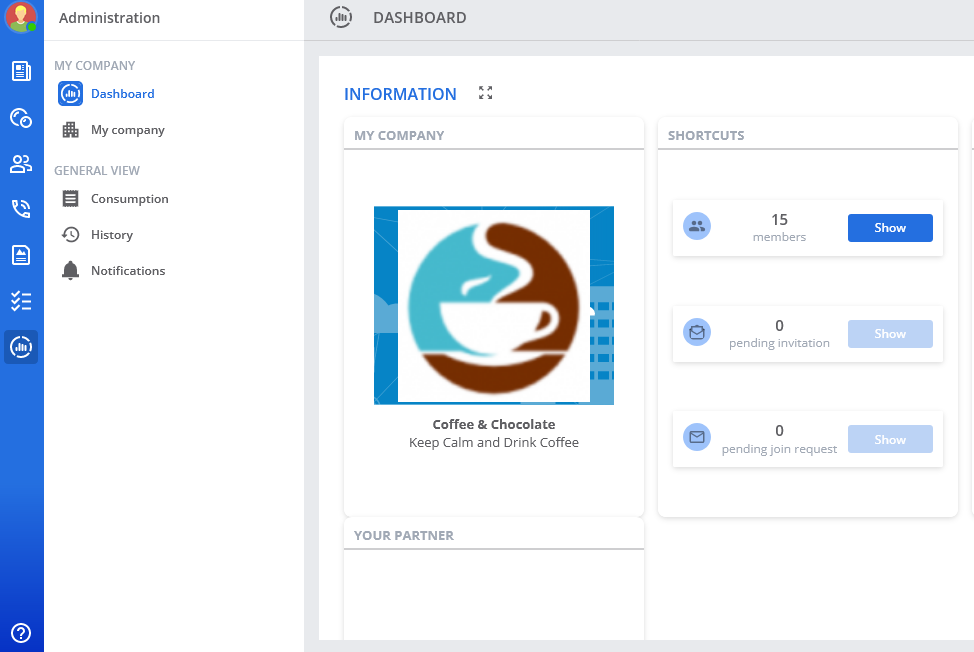 - Klik in het paneel MIJN BEDRIJF op Mijn bedrijf.