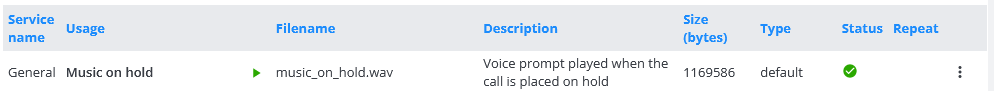 De geüploade gesproken prompt wordt weergegeven in de lijst met Aangepast type en actieve status (). De standaard gesproken prompt wordt automatisch gedeactiveerd.