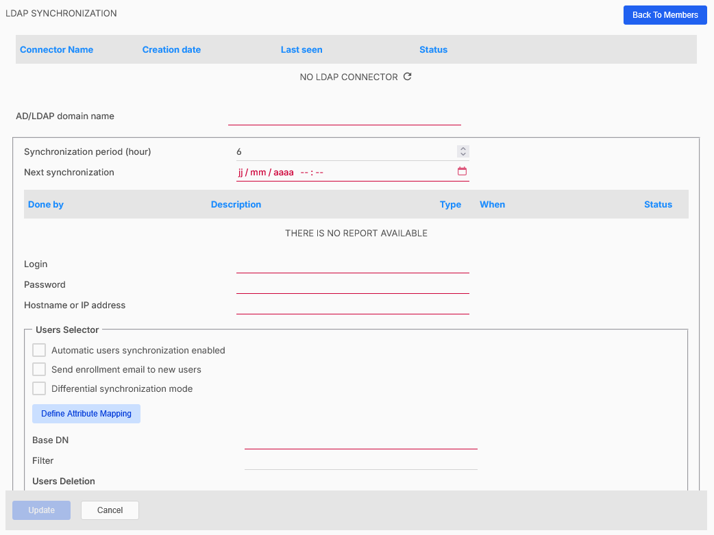 Opmerking: Deze voorbereidende stappen moeten in Rainbow worden uitgevoerd zodat een eerste synchronisatie kan worden uitgevoerd nadat de installatie van de Rainbow LDAP Connector voltooid is.