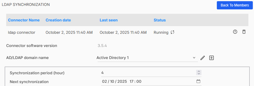 Opmerking: Handmatige synchronisatie is alleen beschikbaar na een succesvolle generieke run. - Een periodieke synchronisatie met LDAP-directory configureren