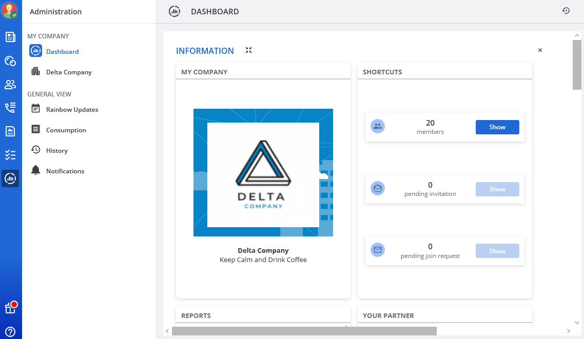 - Vanuit de Rainbow toepassing klikt u op Uw bedrijf beheren