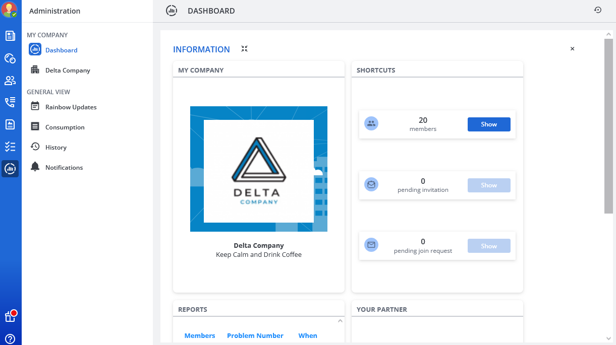 - Vanuit de Rainbow toepassing klikt u op Uw bedrijf beheren