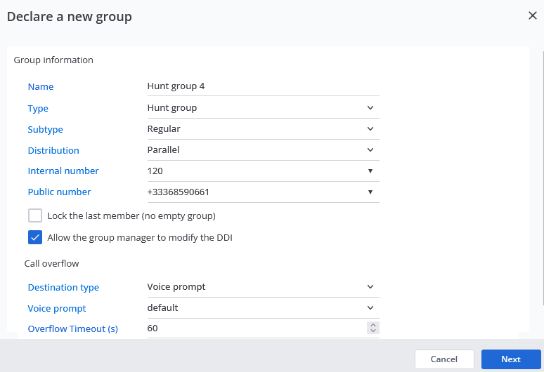 - Beheerder: lid beheert de instellingen van de hunt-groep (bestemming van de oproepoverloop en publiek nummer van de hunt-groep), maar beantwoordt de oproepen niet