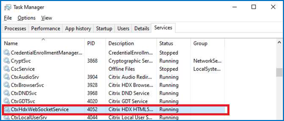 Herstart vervolgens het proces CtxHdxWebSocketService