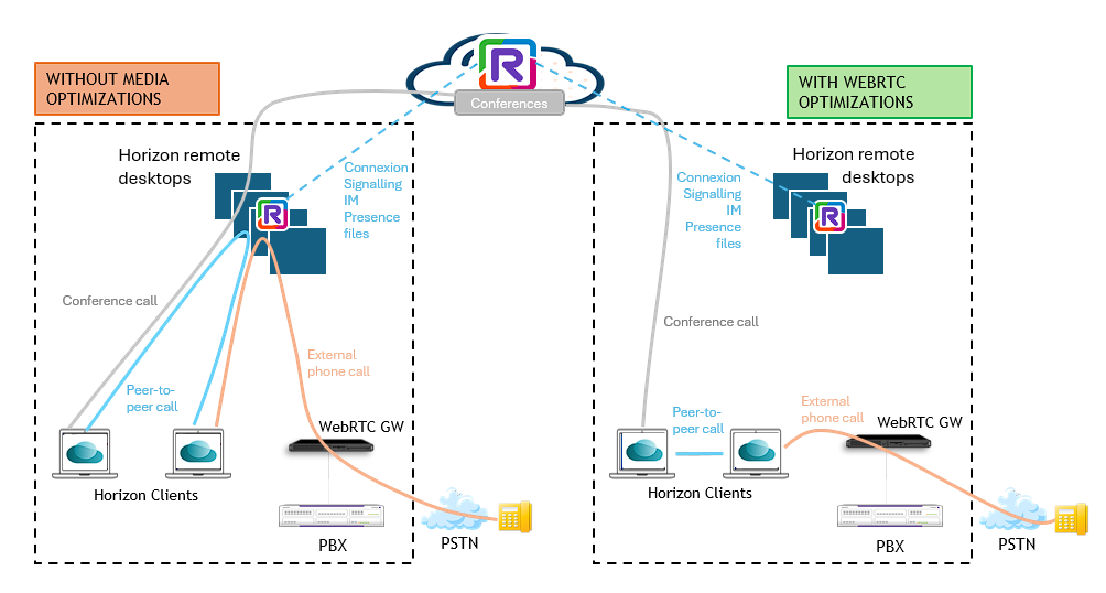 - De Rainbow Desktop-toepassing detecteert automatisch de Horizon-omgeving en de mogelijkheid om optimalisatie te activeren, u hoeft niets te configureren aan Rainbow-zijde.