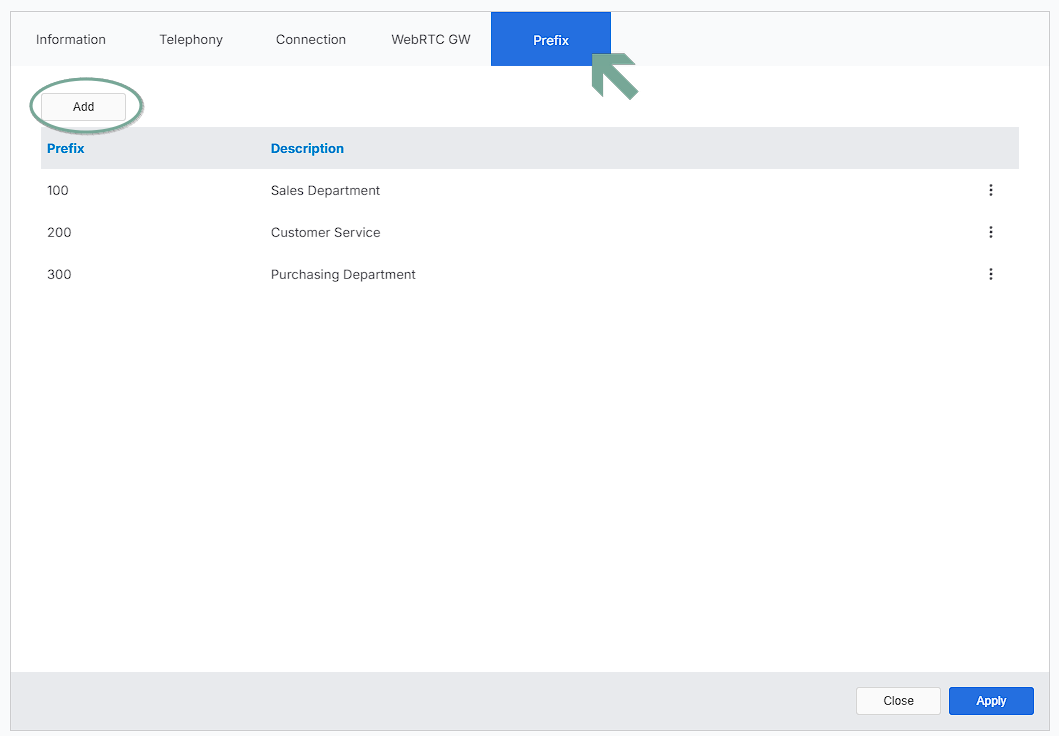 - Invoer in de voorvoegselijst - elke beller-ID die in de voorvoegsellijst is gedefinieerd.