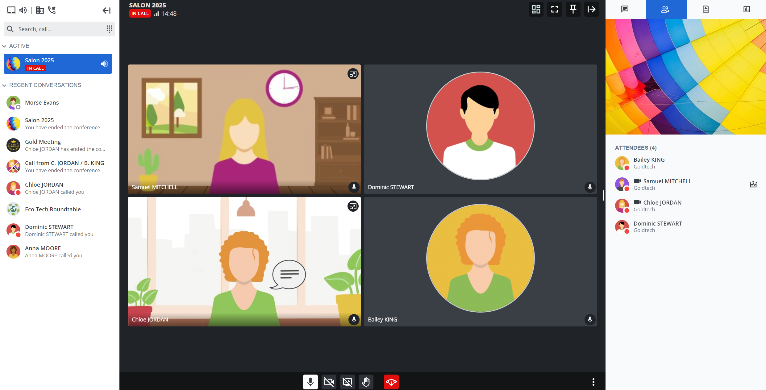Rainbow biedt verschillende lay-outs voor de web conferentie voor optimaal comfort voor de gebruiker:
